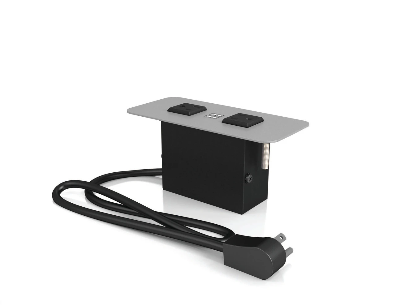 COV Module includes two power outlets and 2 USB ports; 9′ power cord. Available in Brushed Aluminum, Silver Pearl, Glossy White, Black Jack (see above for all colors)