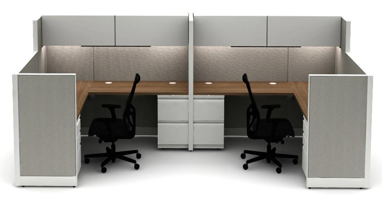 Hon’s Accelerate line is as adaptable as they come and can grow with you, whether you’re a small start-up or an established organization. Hon Accelerate cubicle systems can be configured to your specifications – number and orientation of workstations, tack-able panel fabrics and heights, storage needs and more. Each powered desktop pairs with 2 full height metal drawer pedestals to offer each occupant the most efficient workspace. Each workspace includes a rectangular 72″W x 24″D worksurface, and a 24″D x 48″W side surface. Kit includes Duplex electrical receptacles and a base in feed cable to be connected by a qualified electrician. We encourage you to discuss with us the assembly aspects of the Accelerate line as we are well equipped to connect you with qualified installers in your area if you do not have the resources to complete the assembly. Our designers can assist in sourcing alternate configurations, panel textiles and paint and trim options.