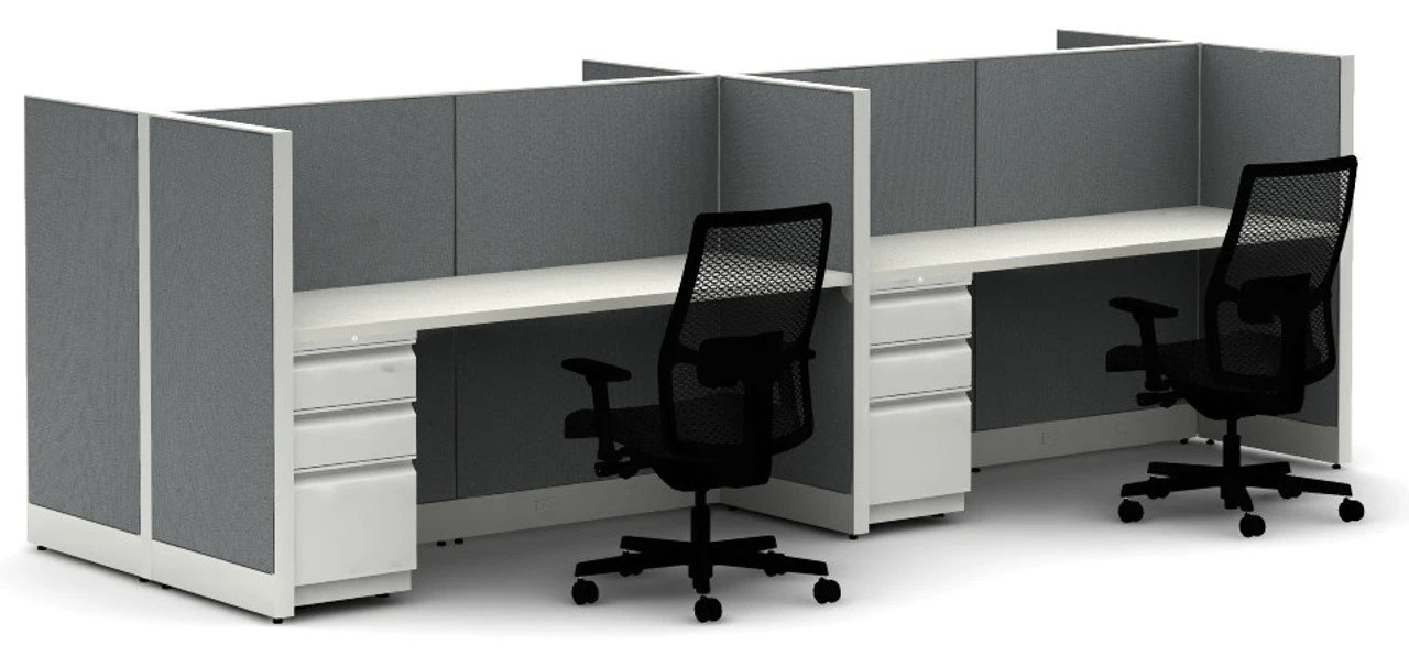 Hon’s Accelerate line is as adaptable as they come and can grow with you, whether you’re a small start-up or an established organization. Hon Accelerate cubicle systems can be configured to your specifications – number and orientation of workstations, tack-able panel fabrics and heights, storage needs and more. PoweredĀ desktops pair with 4 full height metal drawer pedestals to offer each occupant the most optimum workspace. Each workspace includes a 72″W x 24″D worksurface. Kit includes Duplex electrical receptacles and a base in feed cable to be connected by a qualified electrician. We encourage you to discuss with us the assembly aspects of the Accelerate line as we are well equipped to connect you with qualified installers in your area if you do not have the resources to complete the assembly. Our designers can assist in sourcing alternate configurations, panel textiles and paint and trim options.Ā