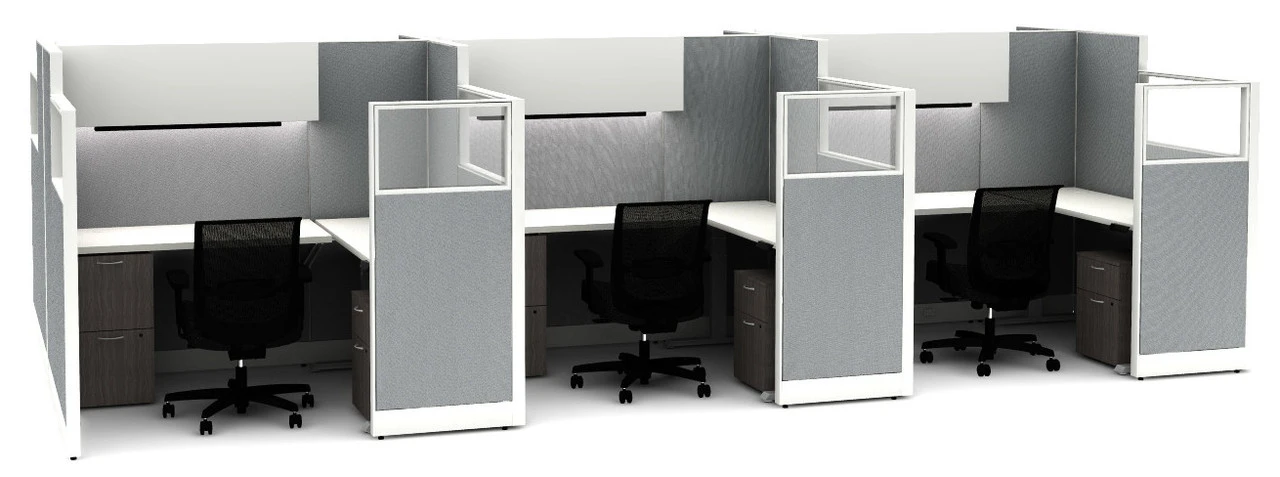 Hon’s Accelerate line is as adaptable as they come and can grow with you, whether you’re a small start-up or an established organization. Hon Accelerate cubicle systems can be configured to your specifications – number and orientation of workstations, tack-able panel fabrics and heights, storage needs and more. Each powered desktop pairs with 2 full height metal drawer pedestals to offer each occupant the most efficient workspace. Each workspace includes a rectangular 72″W x 24″D worksurface, and a 24″D x 48″W side surface. Kit includes Duplex electrical receptacles and a base in feed cable to be connected by a qualified electrician. We encourage you to discuss with us the assembly aspects of the Accelerate line as we are well equipped to connect you with qualified installers in your area if you do not have the resources to complete the assembly. Our designers can assist in sourcing alternate configurations, panel textiles and paint and trim options.