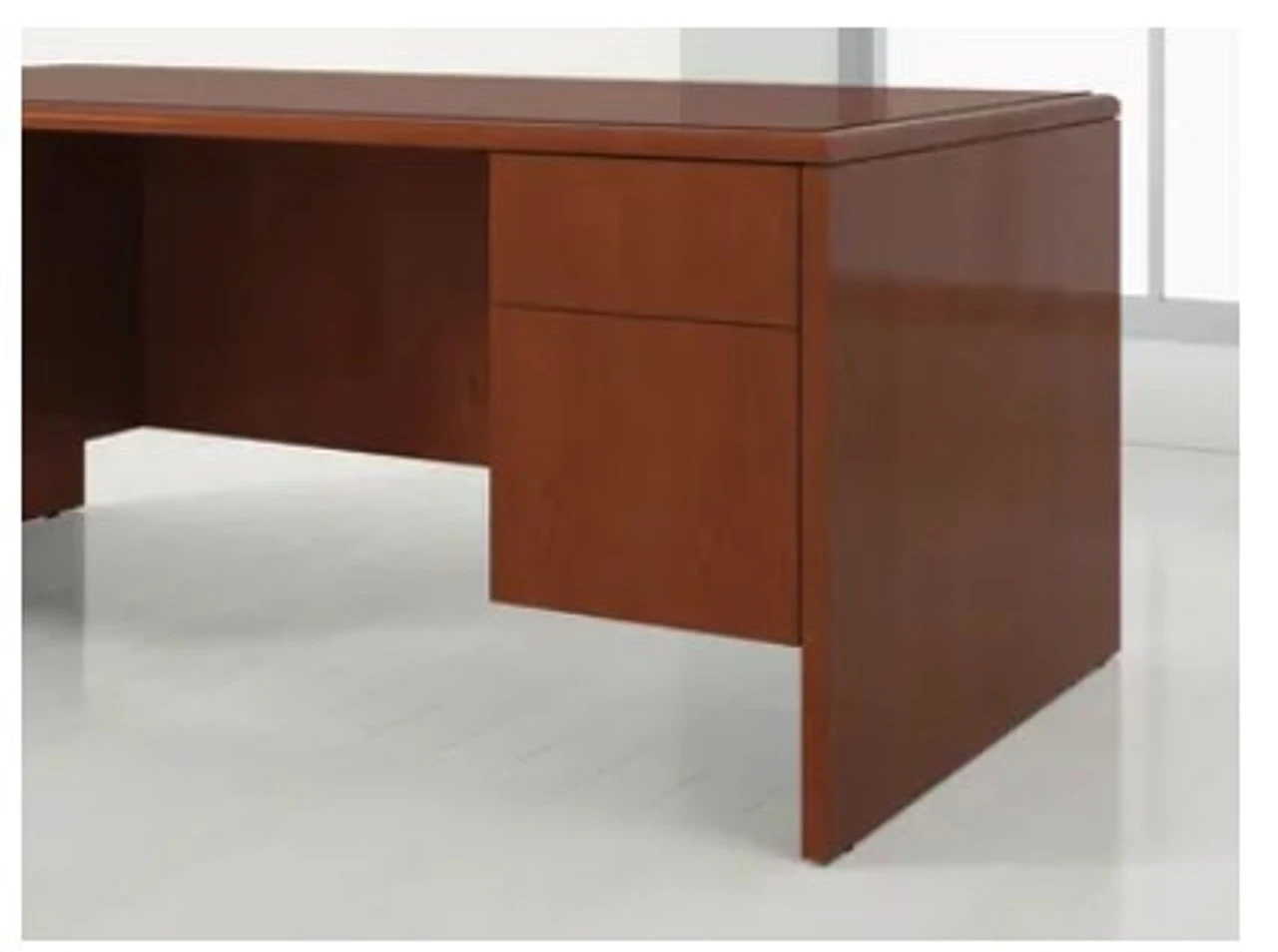 - Desk and return have 3/4 height pedestals (1 each) and modesty panel