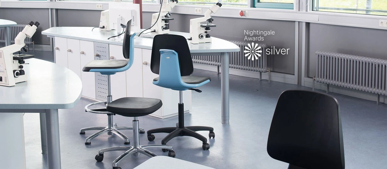 Cramer designs and engineers Med-Tech seating for – laboratories, medical offices, hospitals, and research facilities. Labs and spaces that require rigorous technical standards for comfort, cleanliness and durability, turn to Cramer for their expertise in clean design and ergonomic comfort. The Citrus Med-Tech 360 Stool has a modern design with a cleanroom rating and antibacterial properties, making it a state-of-the-art seating option for hospitals, lab facilities, doctors offices or any healthcare related environment. Options include polished aluminum base, and weight activated brakes that lock when not seated to prevent to stool from rolling away.