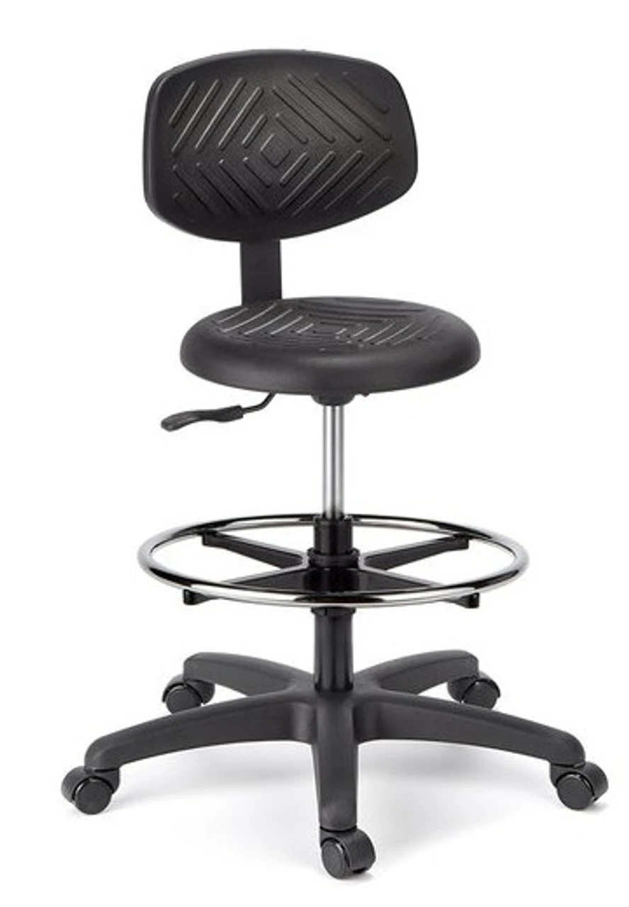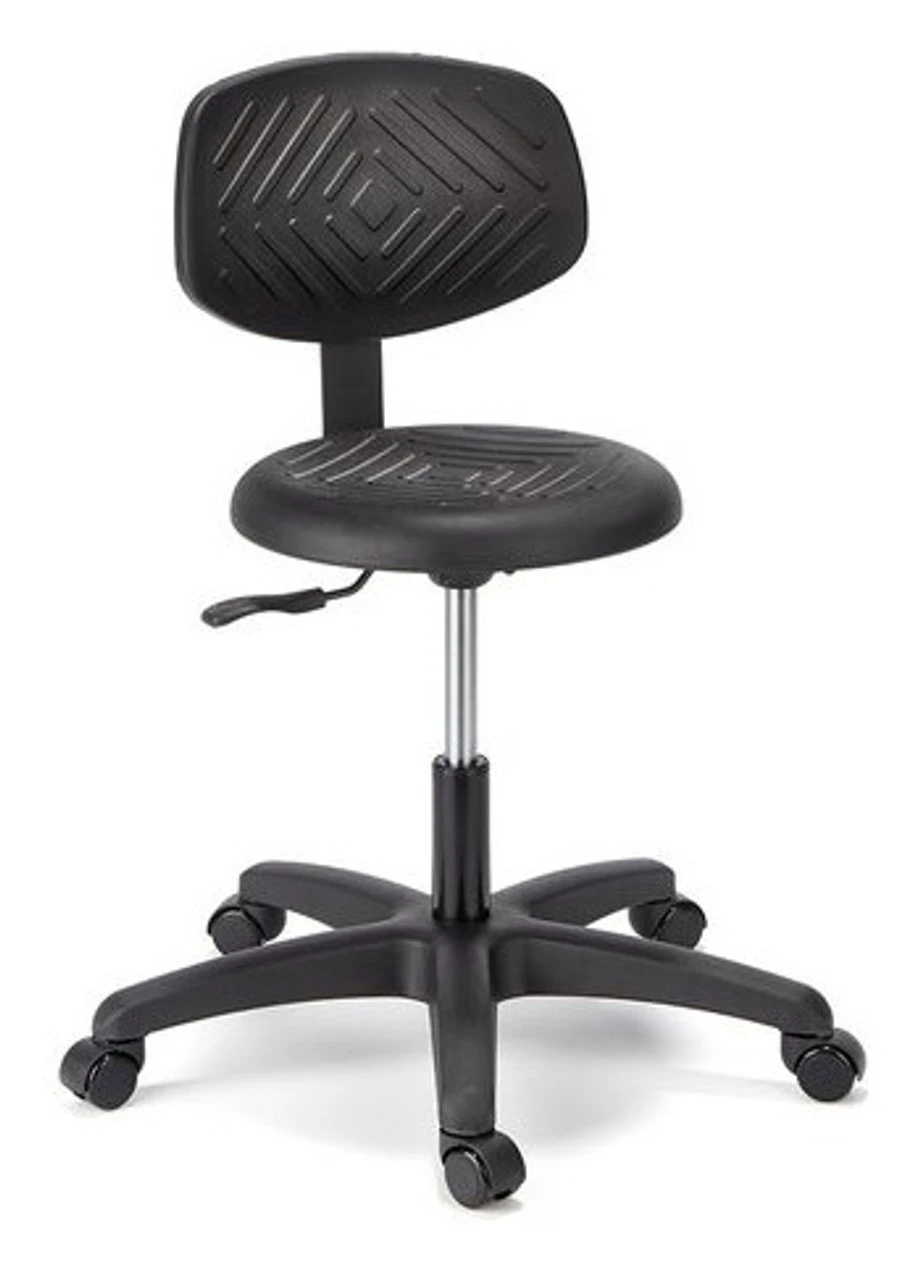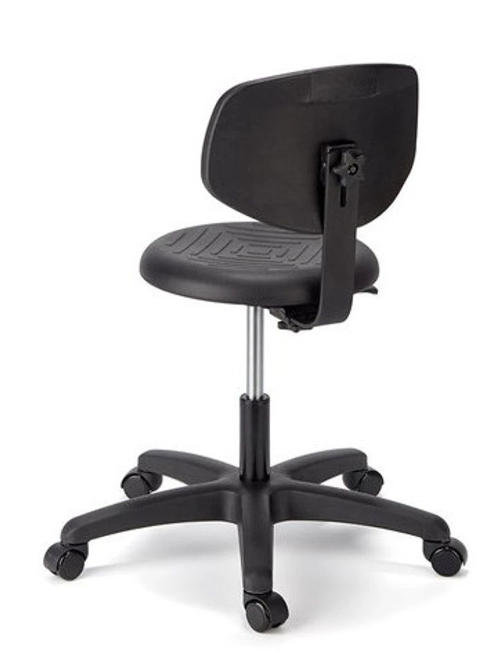 Cramer designs and engineers Med-Tech seating for – laboratories, medical offices, hospitals, and research facilities. Labs and spaces that require rigorous technical standards for comfort, cleanliness and durability, turn to Cramer for their expertise in clean design and ergonomic comfort. Rhino™ Basic Round Stool with back has a self-skinned black urethane seat and lumbar support that resist punctures, tears, and spills. It is easily cleaned and is a great seating solution for higher education, labs and technical workspaces. The Cramer Rhino™ laboratory stool is also available in three heights, with hand height mechanism and stool heights come with footrings. Options include polished aluminum base, and various caster types.