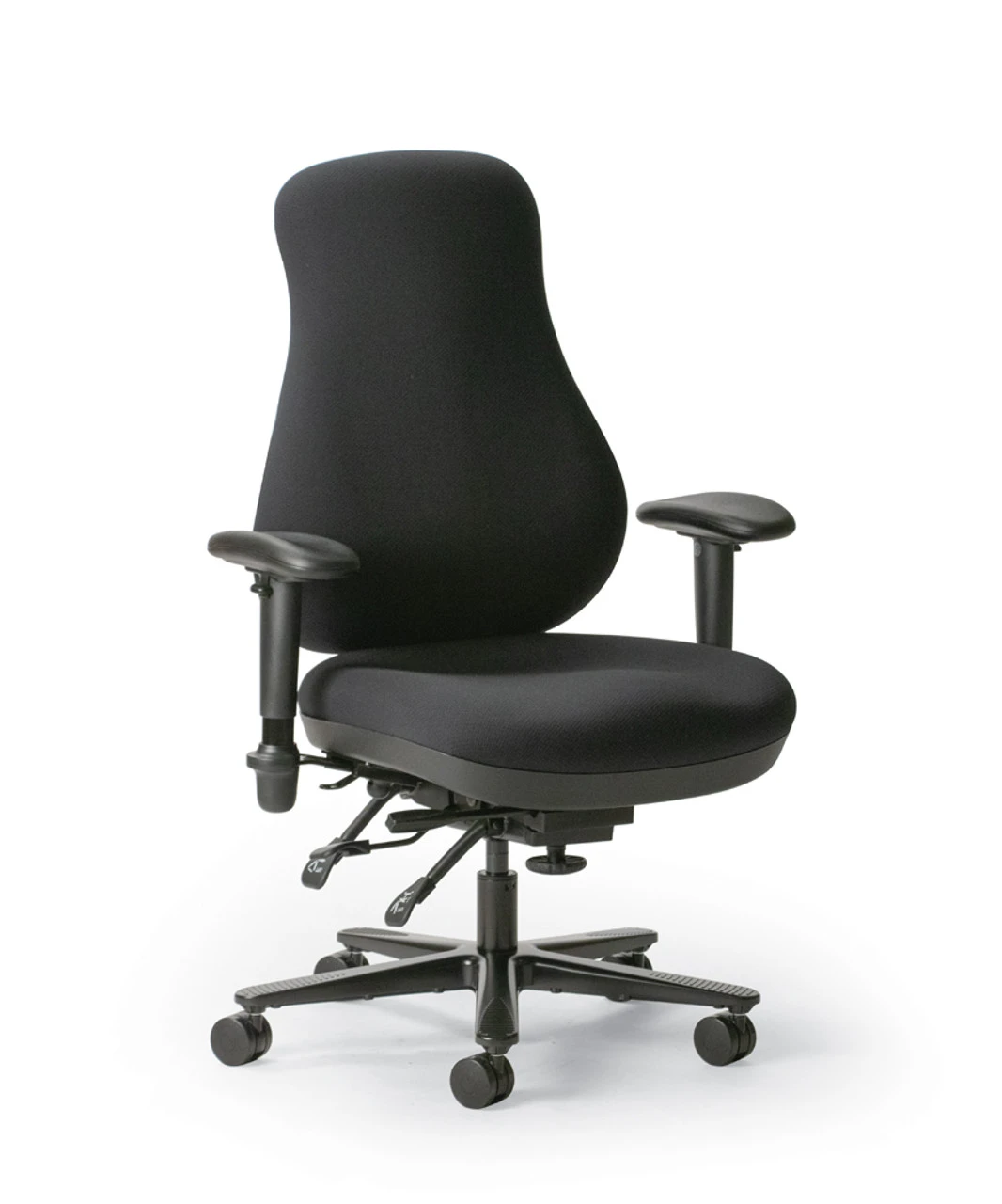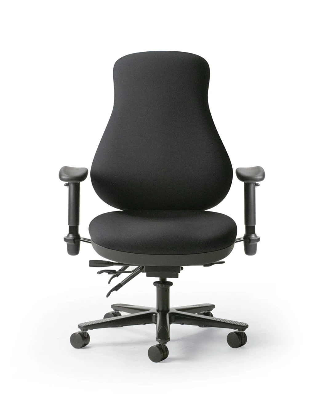 Multi-function Center tilt rocking mode. Backrest angle adjustable 16° (89° to 105°). Seat angle adjusts 7° (-5° to 2°). Tension adjustable. Lockable in 6 different positions. Backrest height adjusts 6 inches into 27 different positions using an intuitive, visible lever. Seat depth adjusts 2½” in 6 positions. Seat height adjusts pneumatically.