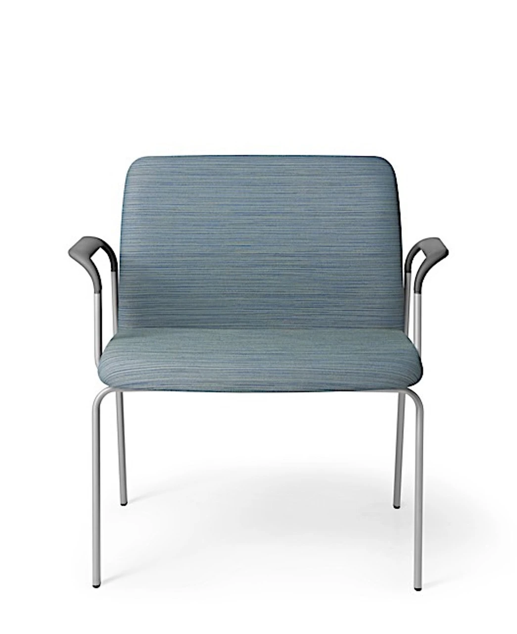 OM’s new product, the Ginny Bear 26″ Bariatric Guest is a great visitor chair, perfect for waiting rooms, patient rooms and anywhere you need ample seating options. Weight rating is 500 lbs and it also passes 1,000+ lbs. ANSI/BIFMA Drop testing, which makes this sturdy chair a must for reception areas and patient rooms and areas. Choose from a variety of upholstery in the “Fabric Selector” above – including many Anti-microbial and Anti-bacterial Healthcare Vinyls. It has a unique upholstered back shell and self-skinned polyurethane arm pads in 2 colors (see below). Frame available in Black or Silver.