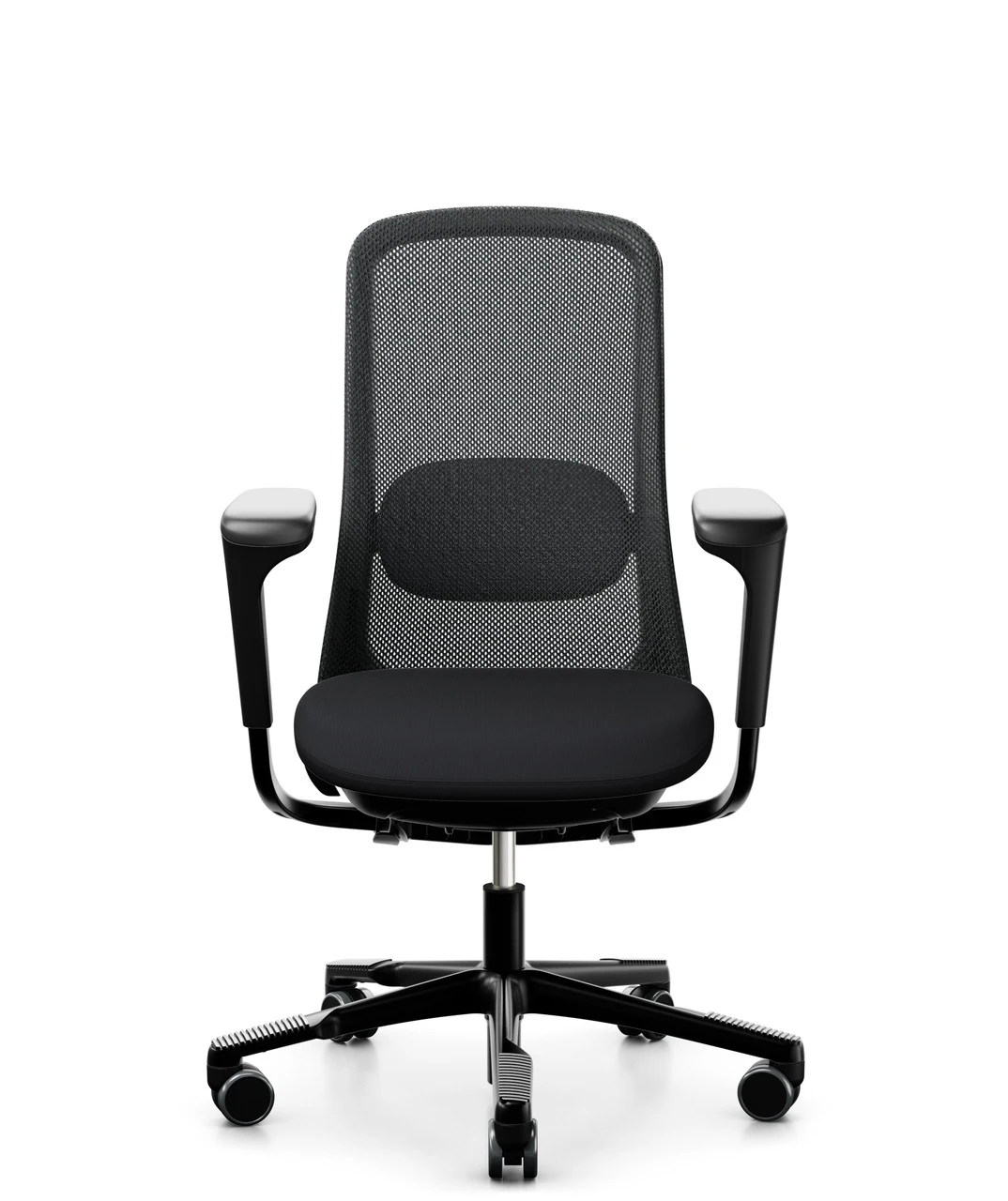 The HAG SoFi Mesh Quickship Tasker has in Balance® technology that ensures more subconscious movement. This mesh chair offers adjustable seat height and depth, and lumbar support. Available with HÅG SlideBack™ armrests that slide out of the way so that you can move closer to your desk! You can sit in a multitude of ways. The height, width and forward position of the armrests can easily be adjusted. Ten-year guarantee against production defects on all office chairs that are in normal use for up to 9 hours per day.