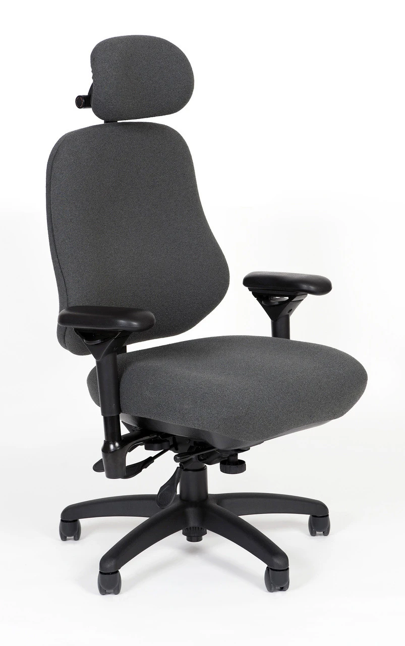 The High Back Executive Stretch is part of the BodyBilt Extra-Tall series, that boast a 10-Point Posture Control adjustability to address and alleviate stressful aches and pains. The slightly contoured seat on this model is one of their most popular designs. Passive weight distribution via surface contact, encourages proper-seated posture and cushions the high-pressure points that lead to discomfort on flat seat designs. The #9 seat pan has a reinforced structure, minimally contoured and is 22% larger than the standard seat. This chair is designed to fit taller individuals (over 6’). The J-style mechanism allows for a smooth rocking motion or may be locked in a stationary position and allows for the backrest depth adjustment feature. This company is known for making some of the best ergonomic designs in the world and their chairs are highly sought after! Ships in 5 business days if upholstered in select fabrics (for all other fabrics lead times increase to 4-5 weeks.) *Residential delivery fees apply.