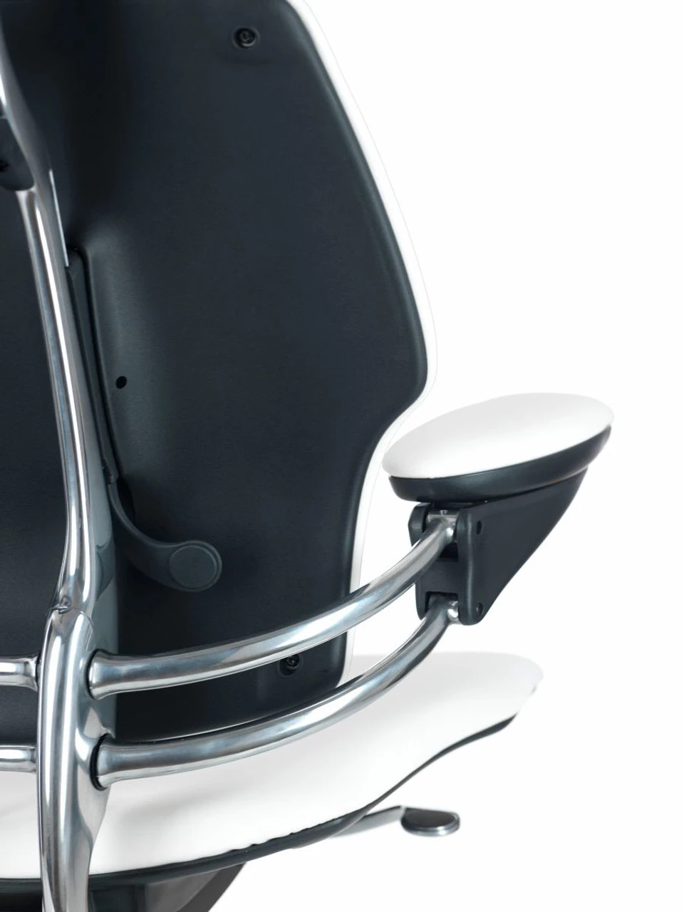 Arms- All Freedom task chair ‘Standard’ arms have a height adjustment range of 6″. Humanscale Freedom chairs have a natural lift and release action with no buttons or engagement switches to fail or fuss with. Unlike other office chairs, they are attached to the back so that when you recline the arms stay with you. The ‘Advanced’ arms carry the same functionality but the arm caps slide in and out for width adjustability. The arm caps are done in a variety of ways. The most popular version is the Duron arm that has a soft and pliable black self skinned rubberized cap. The gel arm has a layer of gel but is capped off with the Duron material.