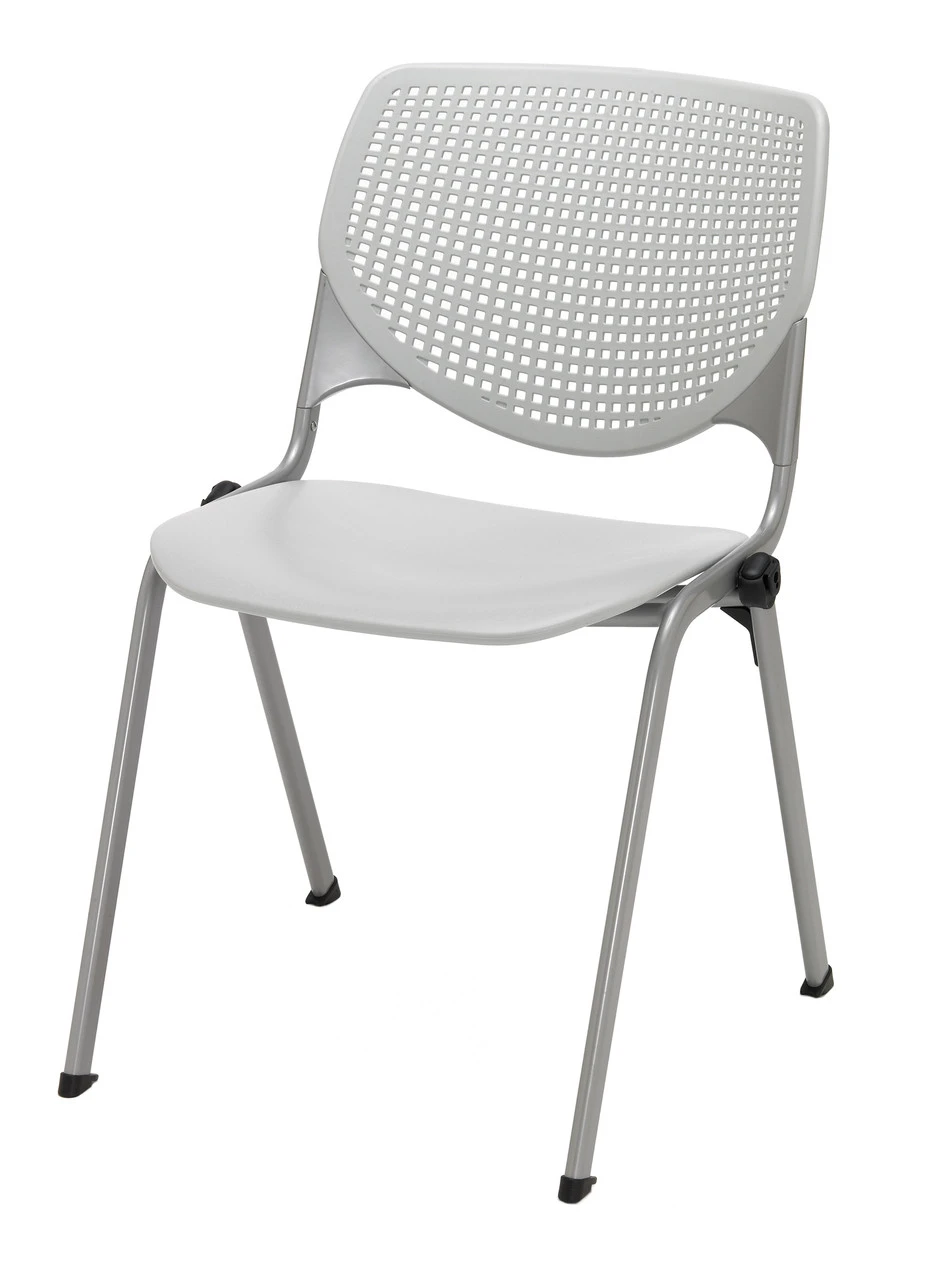 This Kool chair by kfi is the coolest multi-purpose stacker around. It comes in 9 quick-ship polypropylene colors with a perforated back for air circulation and a 15 gauge tubular powder-coated frame in silver. This versatile chair is at home in training areas, cafeterias or as guest seating and can stack 15 high for storing! It has nylon glides and permanent ganging devices attached to the chair. Please call us if you are interested in a chair dolly for moving and stacking these. *An order of more than a dozen chairs may increase lead time to 2-3 days!