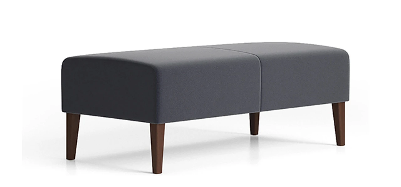 The NEW Luxe Series by Lesro is a heavy duty line of reception seating with an original tuxedo design that has a weight capacity of at least 500 lbs. This 2 Seat Bench is a great looking and durable option for any reception area or waiting room. Luxe reception seating can be upholstered with 2 different fabrics – one on the body of the chair and another on the back panel although these benches will not have this option as they have no back panel or arms. Legs come either in six wood finishes or five metal finishes. The seat is manufactured with Lesro’s Matrex Support System, ensuring long-life comfort. Minimal Assembly Required.