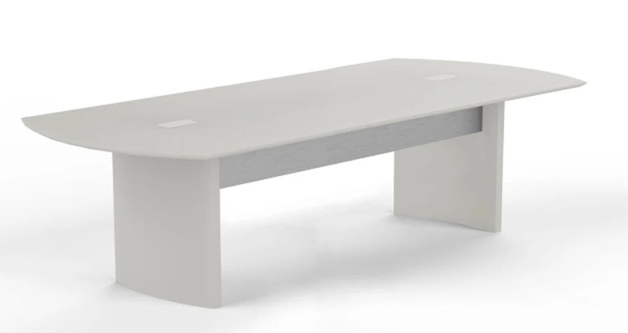 The Medina Laminate 8′ Conference Table by Mayline/Safco is the perfect complement to most any décor. The table features elegant lines with excellent durability, while offering plenty of opportunity for interaction and engagement. Available with a beveled edge combined with Gray Steel, Mocha, or Textured Sea Salt laminate. Also featured on this table are two grommet holes 4″ by 8″ to insert a power outlet (shown as options below) or snake other wires up through the table. Power modules if selected simply drop into the grommet cutouts. Standard table arrives with the cutout and simple flush cover. Easy to assemble, shipped in four pieces, two legs, a 8′ table top and a modesty panel . Only simple tools required to assemble! Top is in a one piece section.