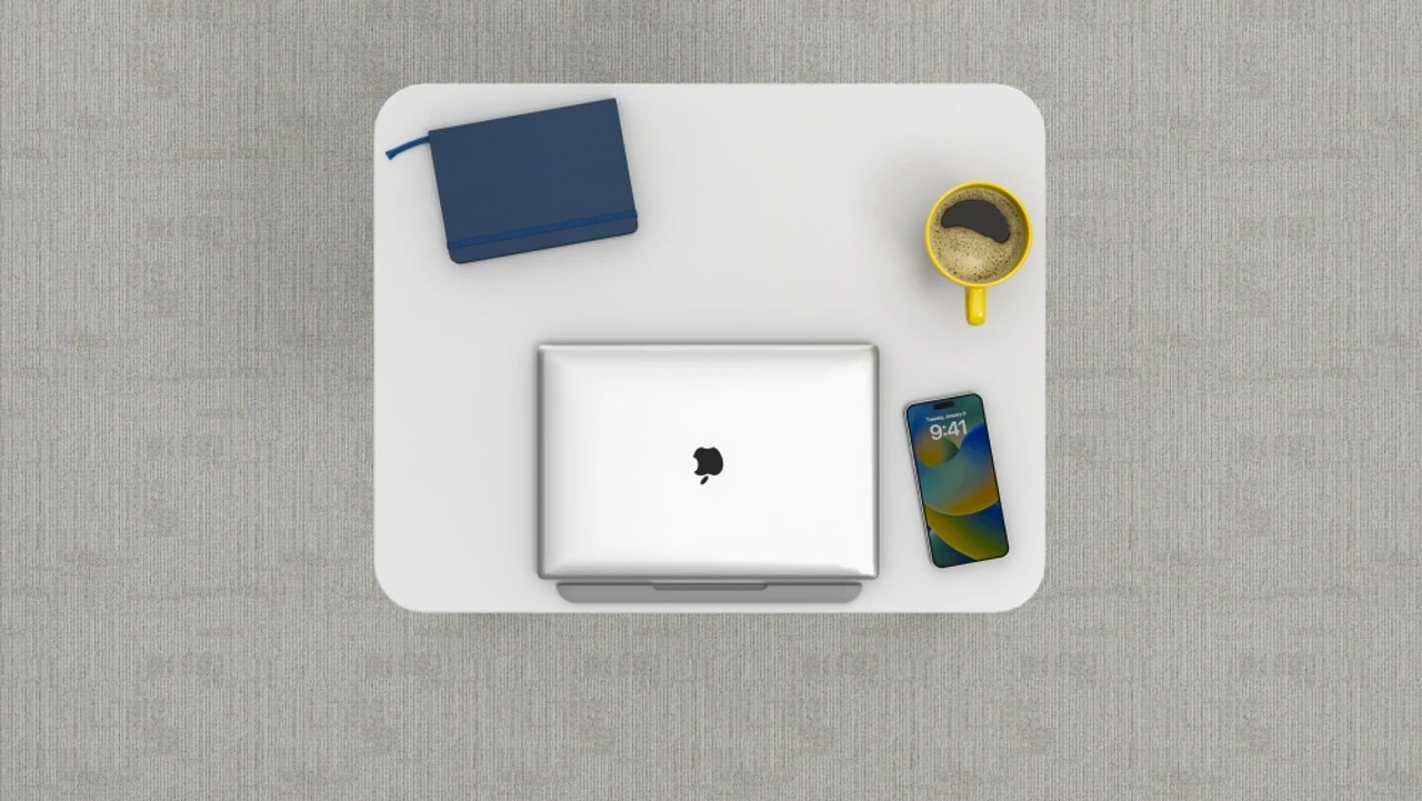 - Standing mobile workstation is available in matte white with standard, two-toned gray and white locking casters