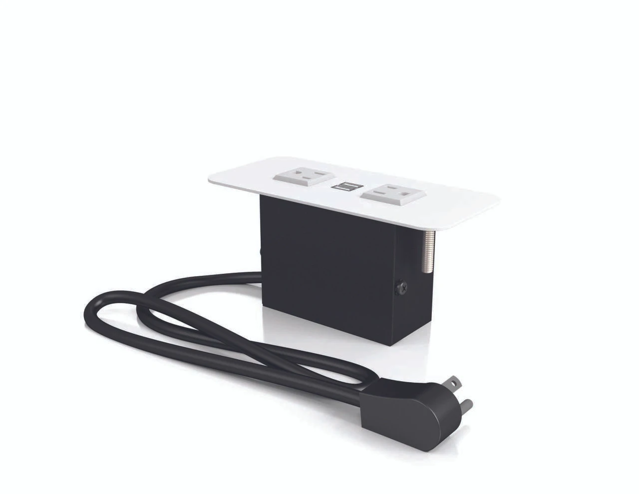 COV Module includes two power outlets and 2 USB ports; 9′ power cord. Available in Brushed Aluminum, Silver Pearl, Glossy White, Black Jack (see above for all colors)