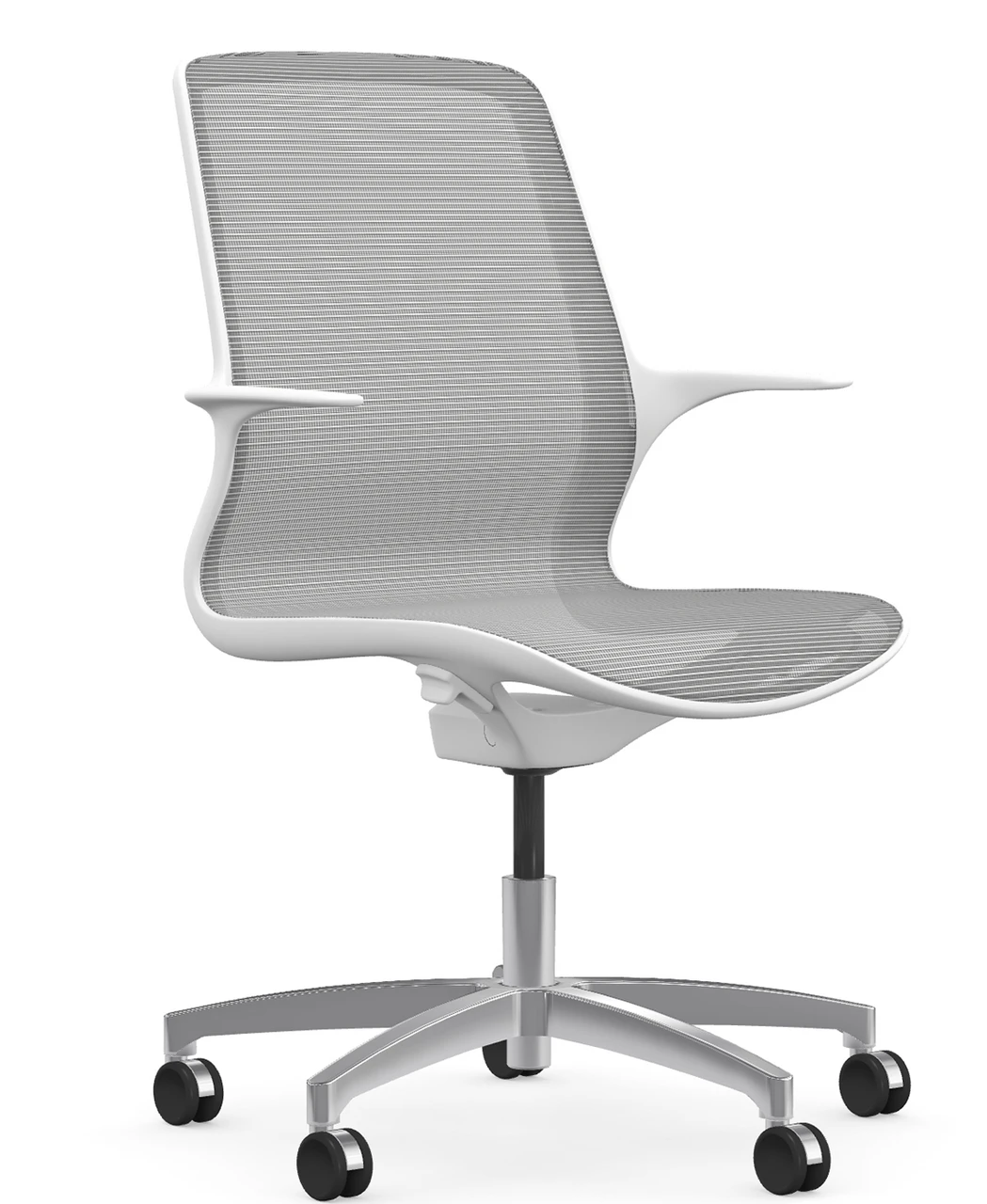 The organically shaped Omnia is designed to provide simple but effective support. The back recline is effortless and minimal, allowing you to just sit back and relax. Its minimal frame and one-piece mesh seat and back make it an elegant seating solution that fits in any context. lightweight and easy to roll around, it’s not only perfect for the home office, but can be used in any transitory, training, meeting or collaboration space. Contact us for your best price and custom order. Ships in 5 Business Days.