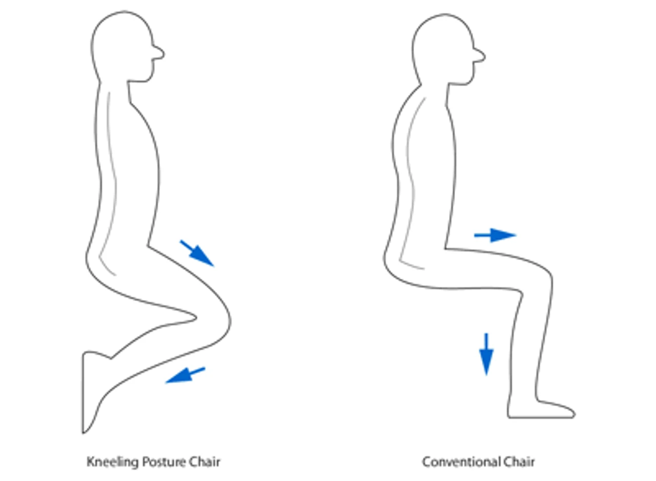 Design Studio Note- this Jobri kneeling chair is best suited for users 5’10” and under due to the spacing between the knee pads and seat. The seat and knee pads can only be adjusted height wise in unison not independently. This chair is probably best utilized for use in shorter sitting increments and is not designed to be used 8 or more hours per day. Most kneeling chairs perform best for their users if the user alternates between a traditional office chair and a kneeler. Remember that it’s all about movement and changing positions.
