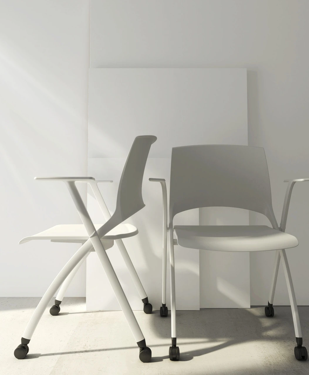 Friant’s Soleil Nesting Chair is easy to fold or unfold, allowing for ease of storage, quick room setup and breakdown. Even when folded, smooth-glide castors allow the chairs to be effortlessly distributed or gathered. Sold 2 per carton, priced per carton.