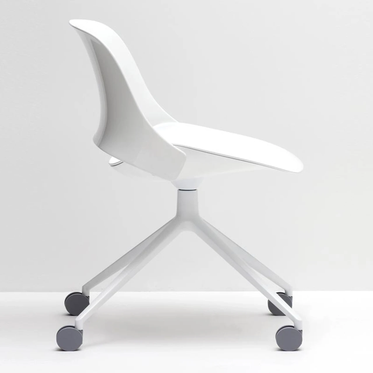 The Red Dot Award-winning Trea Chair is a modern white shell chair that is simple, ergonomic, and as versatile as it is comfortable. Created in collaboration with visionary designer Todd Bracher, Humanscales’s Trea Chair offers intuitive comfort by mimicking the instinctive recline of the human body and embracing the sitter in a supportive shell. Trea can be adapted for both office and home interiors. This modern white shell chair features a four-star and a four-leg base that are interchangeable, so the Trea chair can be customized for different environments and uses while maintaining visual consistency throughout a space.