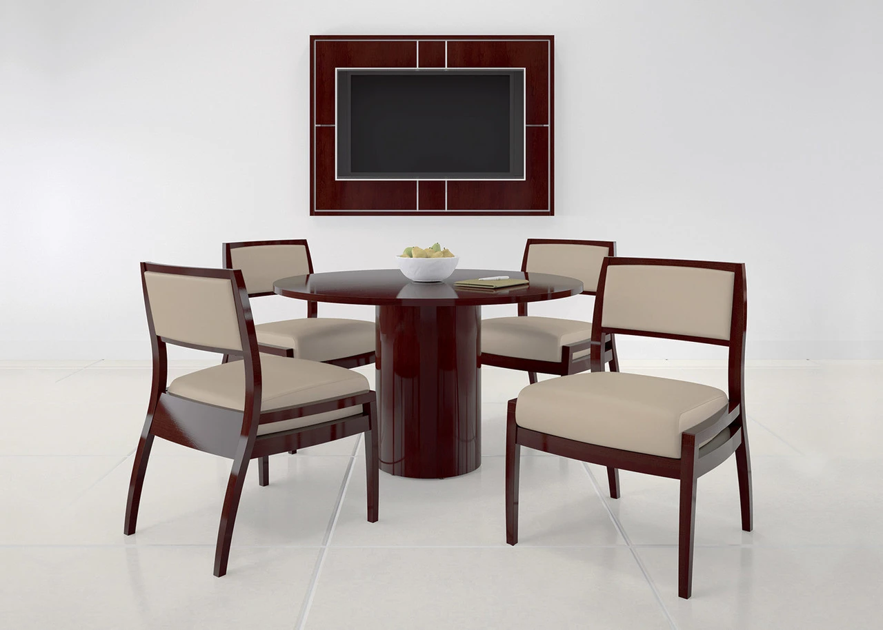 The Universal Round Table with Laminate Top and Base is available in 3 quickship finishes, with a cylinder base. Sturdy, well-made and appropriate for a variety of applications, these laminate wood tables are economical without losing quality. *Ships free to commercial addresses with loading dock, otherwise fees apply. Does NOT ship to a residential address.