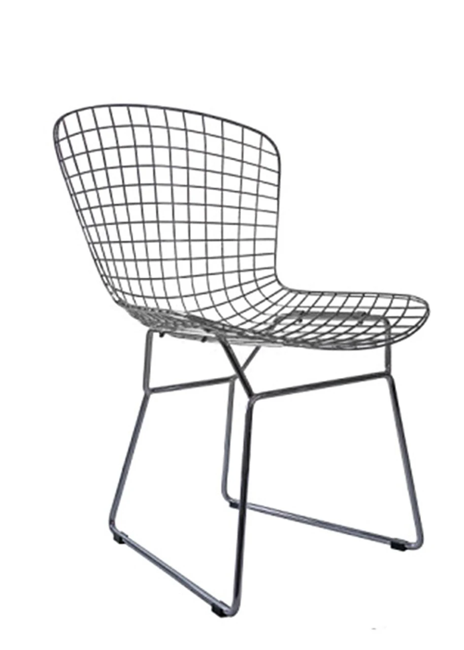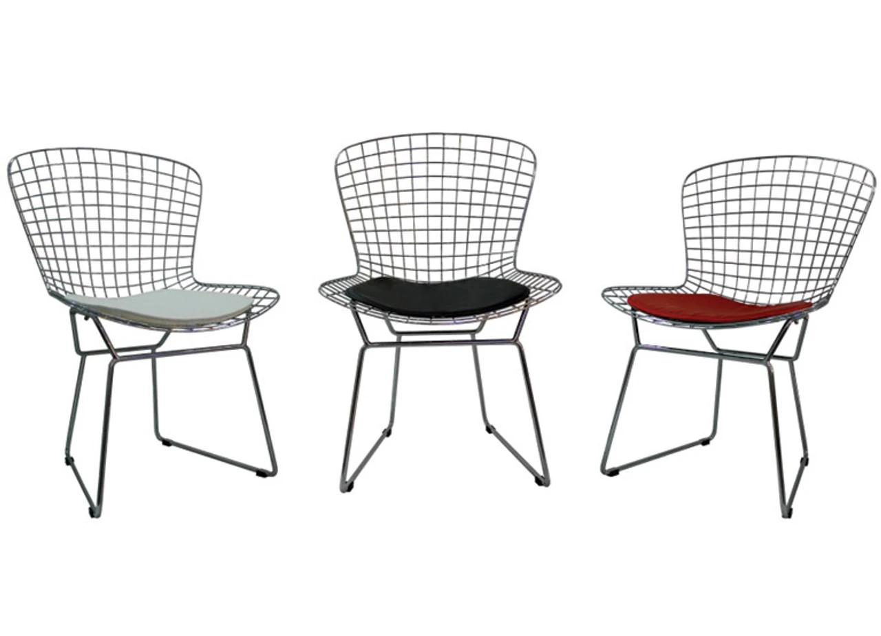 Contemporary highly polished wire frame metal side chair by Woodstock. The Who design is a modern classic. This high quality reproduction has a hand polished frame and sports an optional Eco-leather slim profile cushion as an option. These chairs are packaged at the factory in sets of two and must be ordered in multiples of two. We are unable to ship ‘odd’ amounts. Chairs are priced per carton of 2.